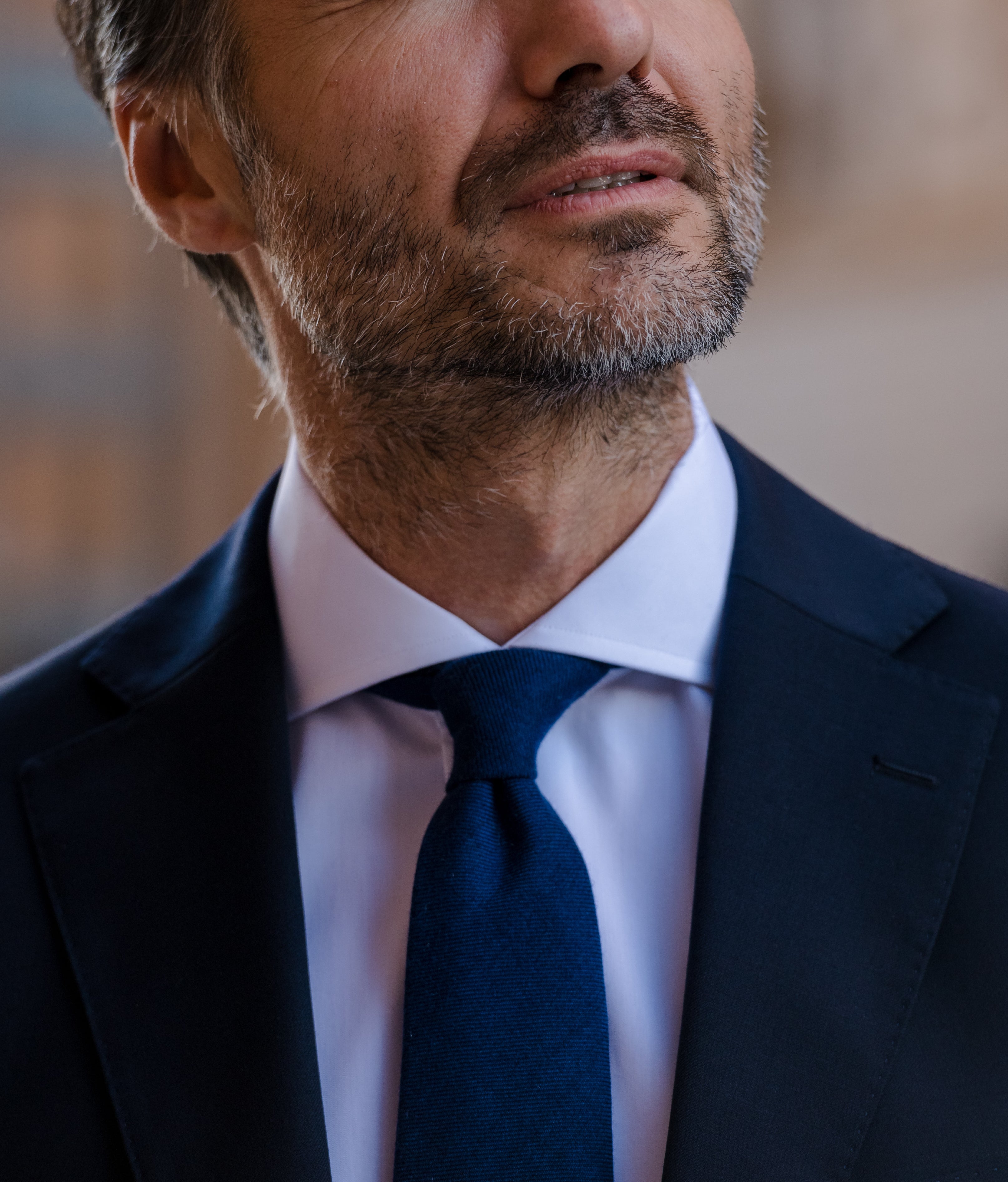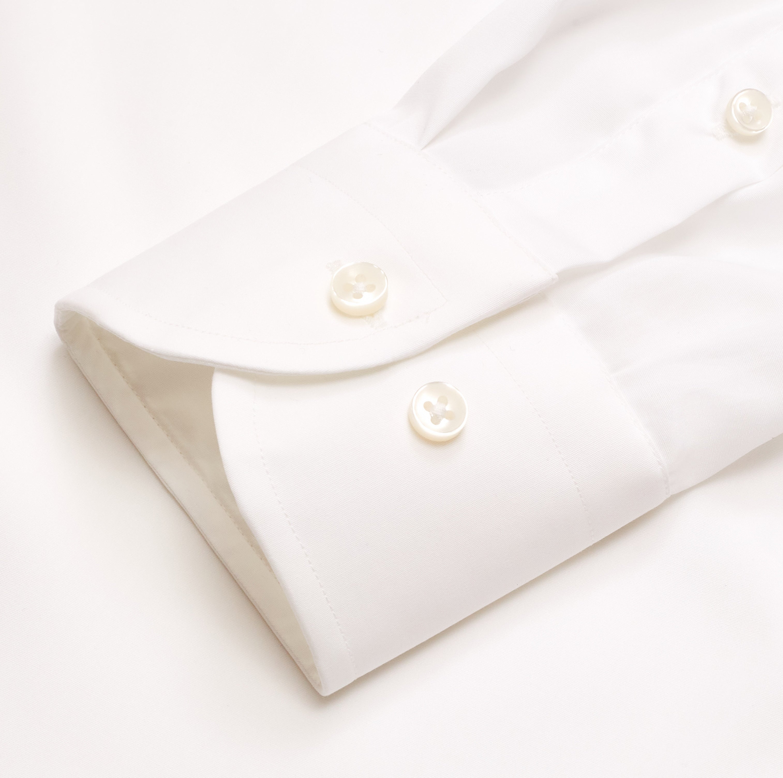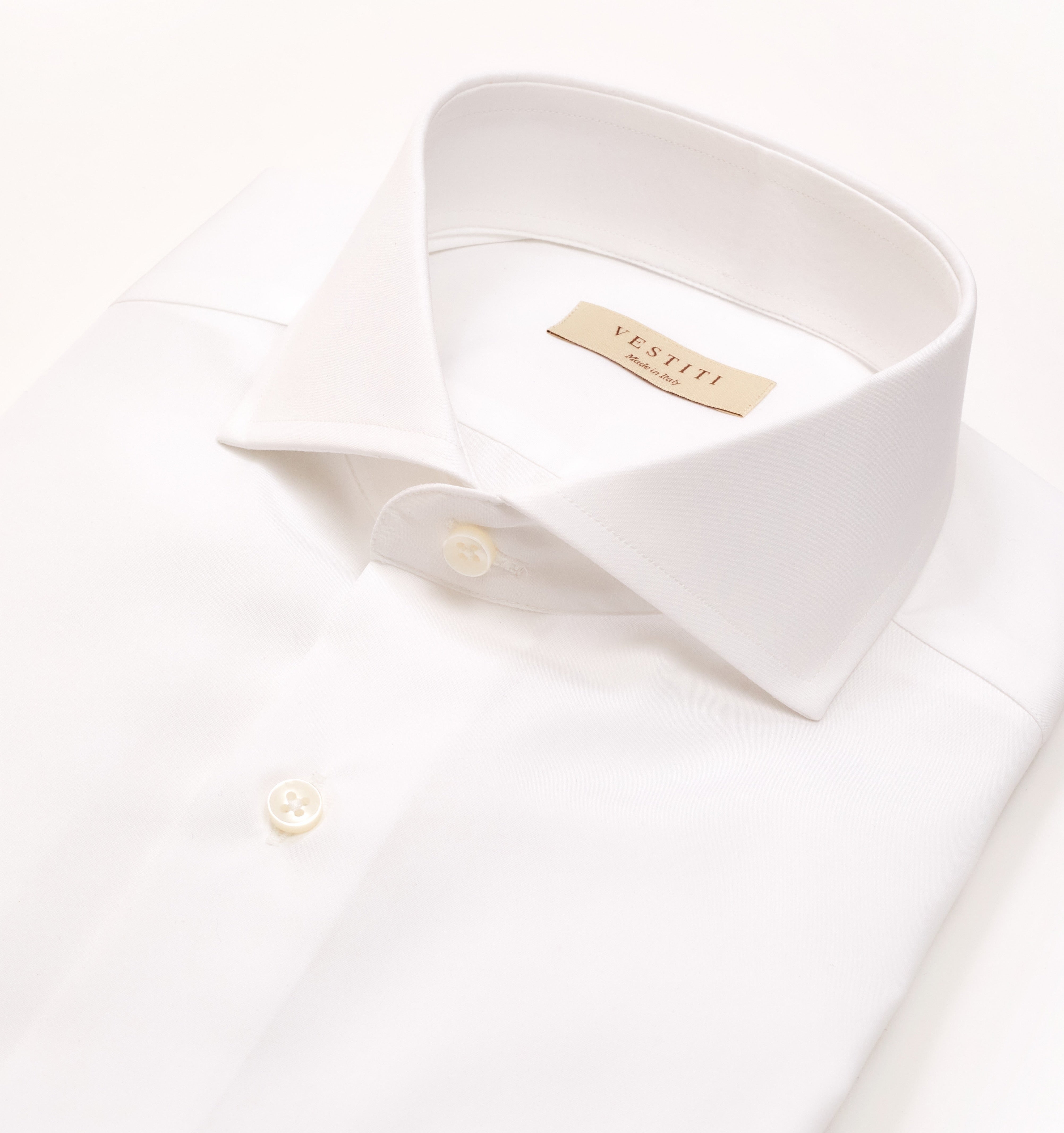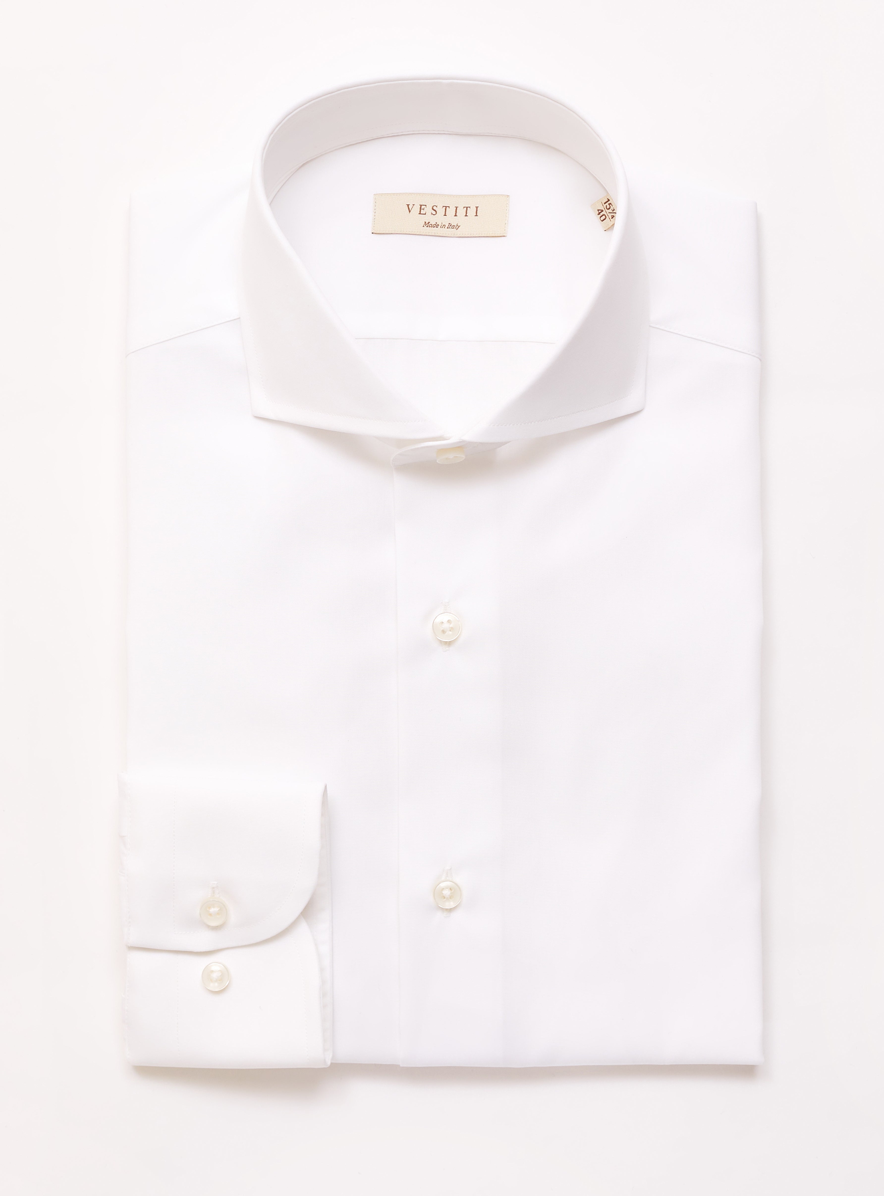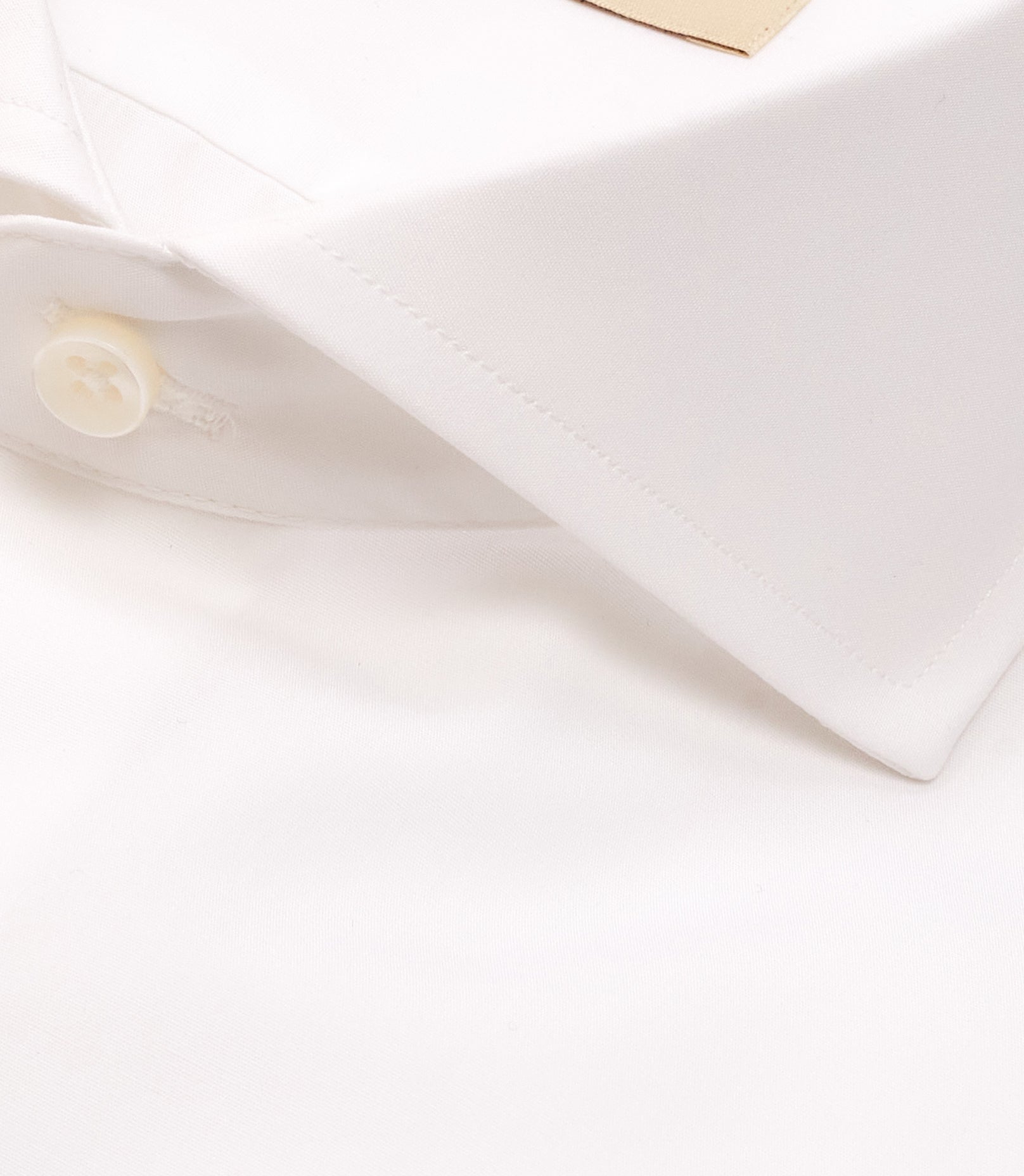 Crafted in Italy from smooth cotton poplin, the White Cutaway brings together modern ease and classic tailoring. The spread collar frames a clean line whether worn open or under a jacket, while the fine weave gives a light, breathable hand feel. Each stitch, seam, and gusset is cut with the quiet precision of Italian shirtmaking.